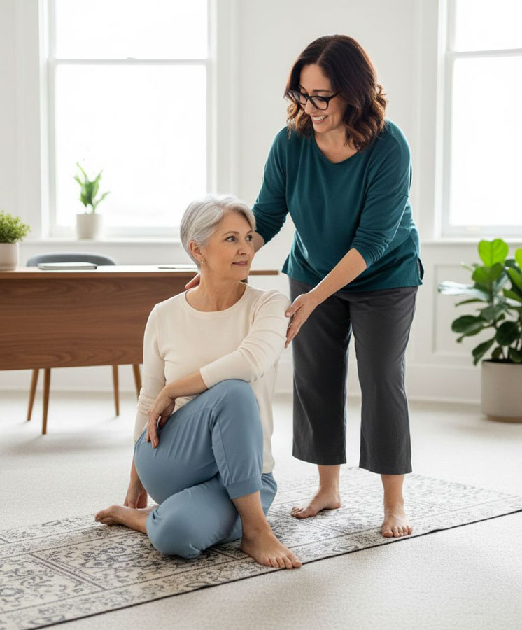 Based on your intake and current needs, each session may include a combination of therapeutic movement (asana), breathwork, meditation, relaxation, or mindfulness practices. The specific tools used will depend on your symptoms, energy levels, and capacity on that day. Practices are always adapted and accessible, with an emphasis on nervous system regulation rather than performance or achievement.
